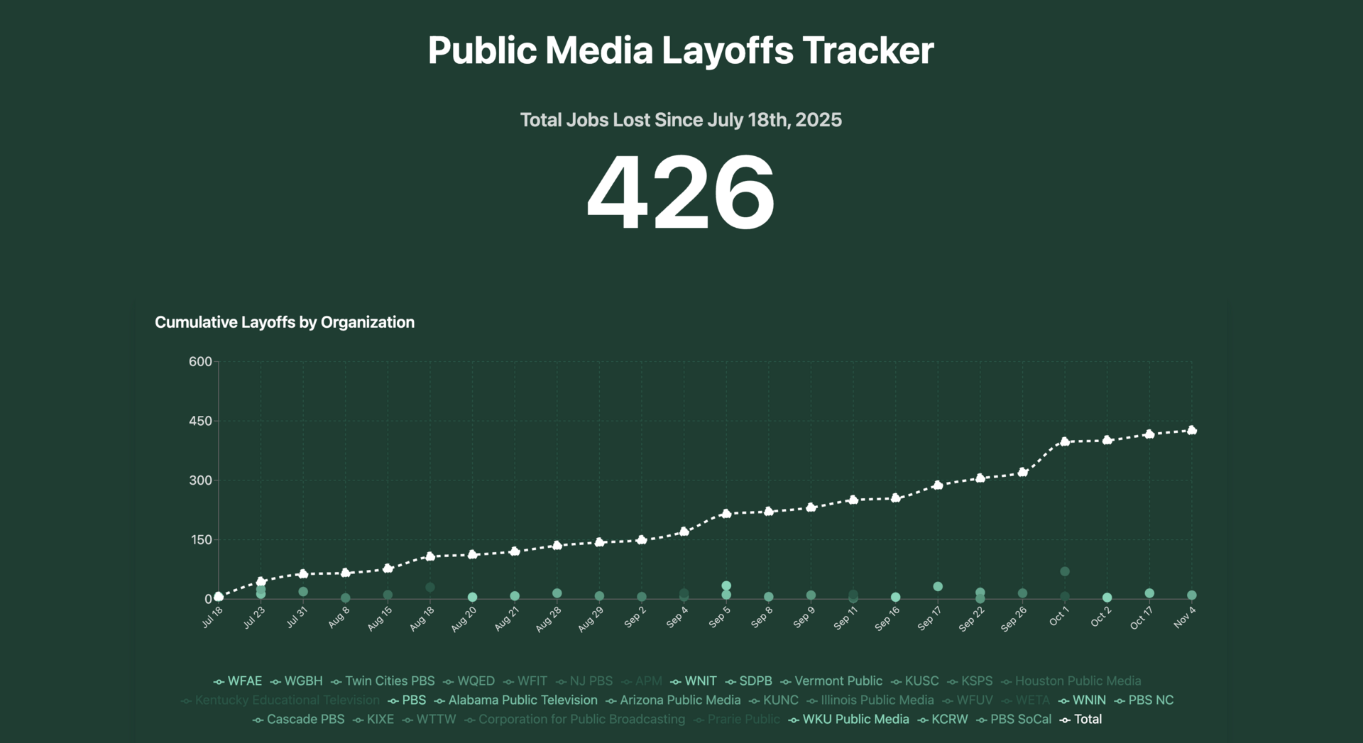 Screengrab from Layoffs.Semipublic.co, Captured 11/8/25.
